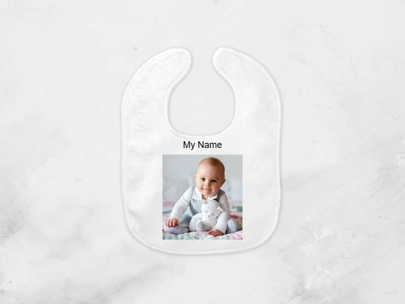 These baby bibs are made from polyester. Size: 31h x 27b cm.