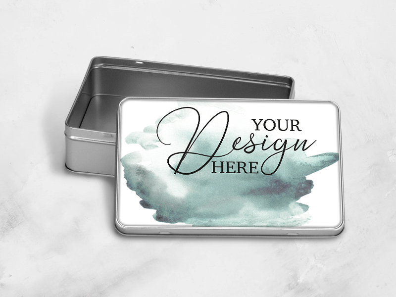 This high quality metal tin features a printable metal disk on the lid. Size: 20 x 13 x 5cm