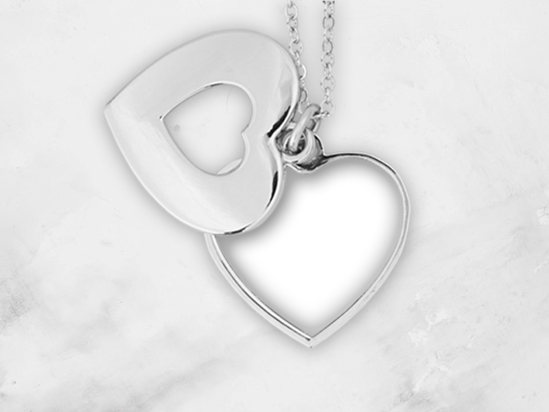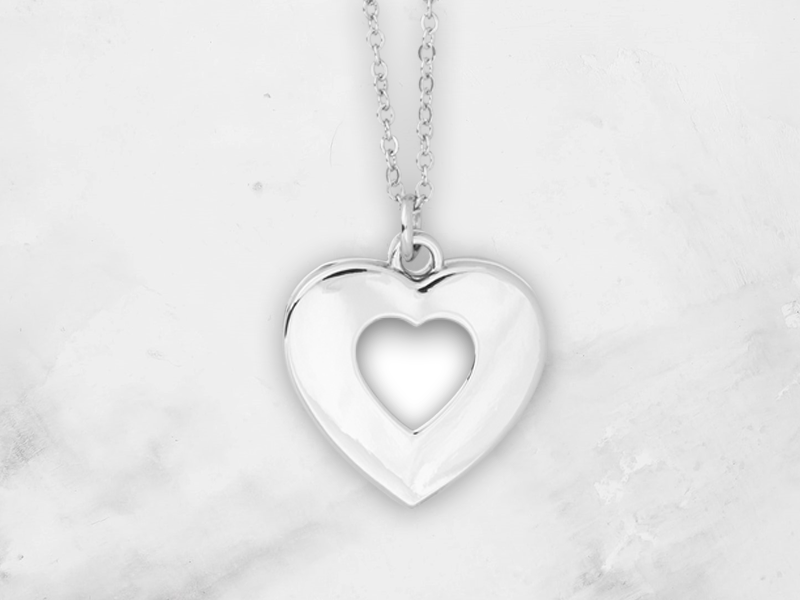 This heart necklace is made out of a zinc-alloy for long lasting durability and features an aluminium plate for printing. Heart size: 27 x 25mmNecklace length: 230mm (closed chain plus 60mm extender.