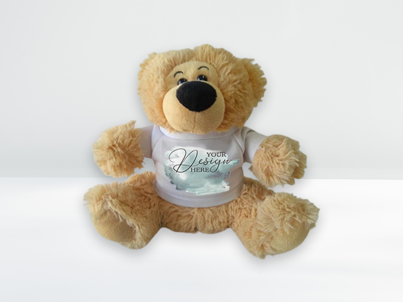 This cuddly brown teddy bear comes with a mini printable shirt.